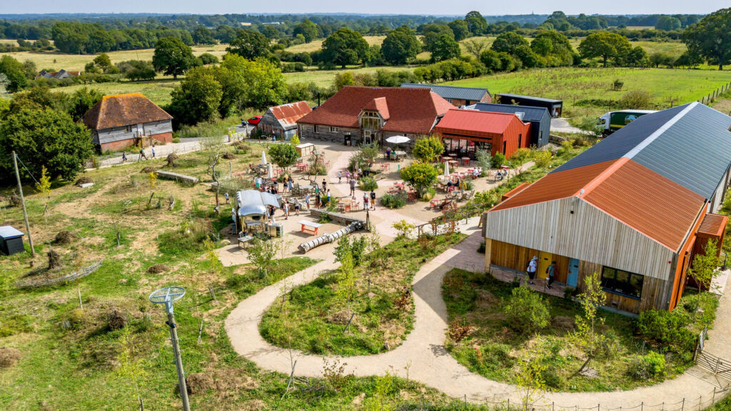 Challenges, such as sourcing sustainable materials amid supply chain constraints, were overcome through innovative problem-solving and close collaboration with other contractors renovating the adjacent farm shop and café. The result is a functional space that not only serves practical needs—like parking for walkers and a kitchen showcasing wild-range meats and organic produce—but also educates visitors on rewilding.