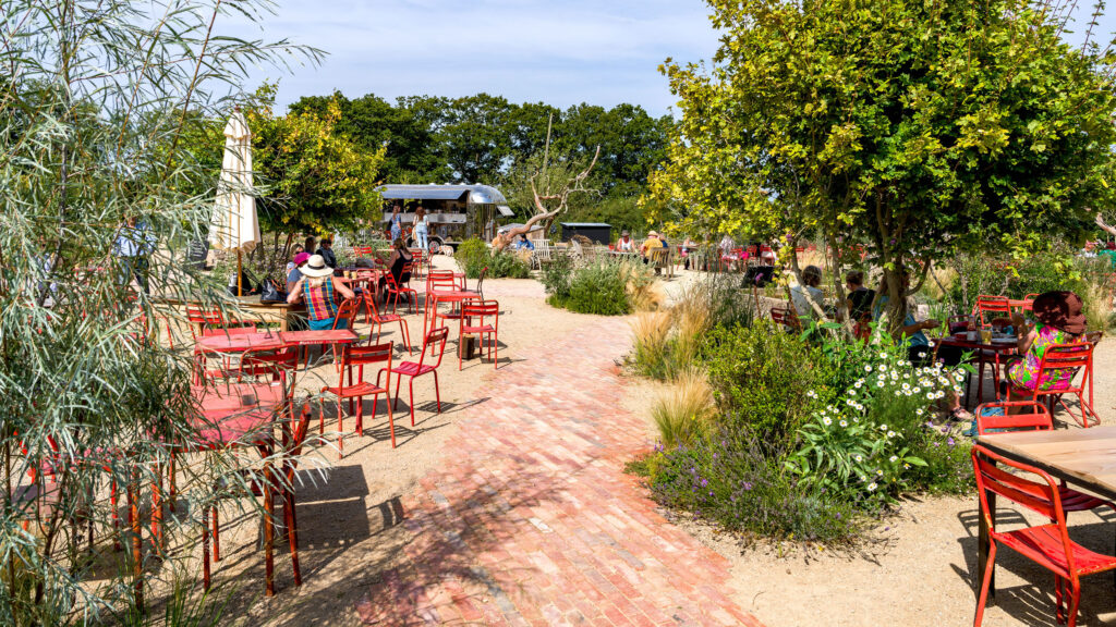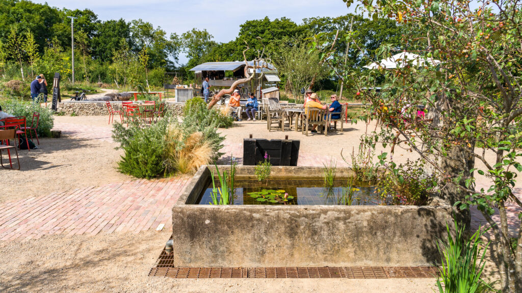Recycled components were incorporated into pathways, seating areas, and structural features, ensuring that the build aligned with circular economy principles. The landscaping features native plantings that support local pollinators, birds, and insects, creating micro-habitats that enhance the overall biodiversity of the Knepp Estate. For example, wildflower meadows and hedgerows were integrated to provide food and shelter for wildlife, while permeable surfaces were used to manage rainwater runoff, preventing soil erosion and promoting groundwater recharge. Management of the project was meticulous, with Graduate Landscapes coordinating onsite activities through regular stakeholder meetings to maintain high standards and meet tight deadlines.